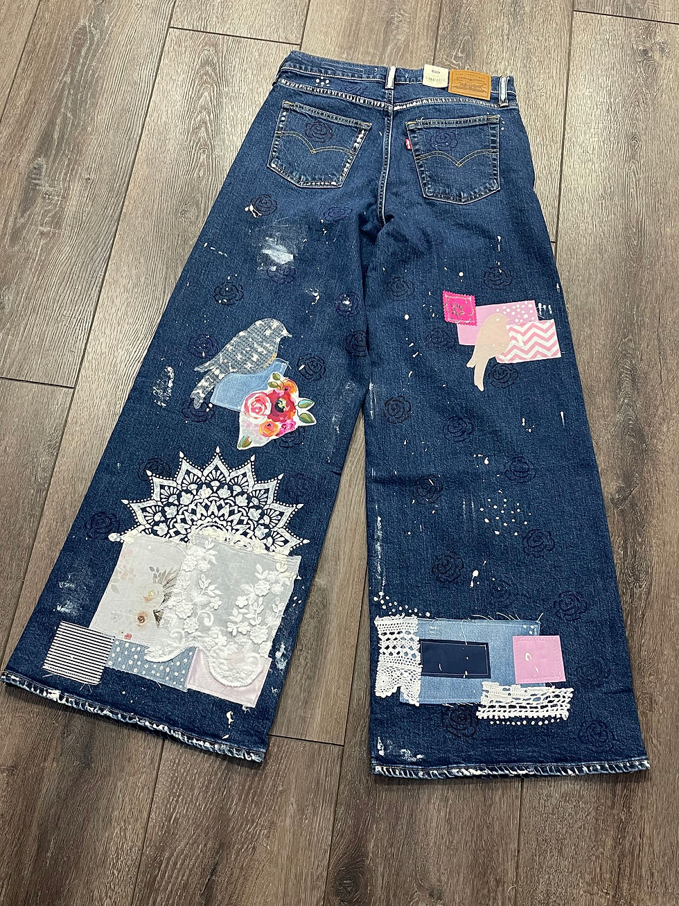 Sz 16 Women’s Boho Peace Barrel Jeans
