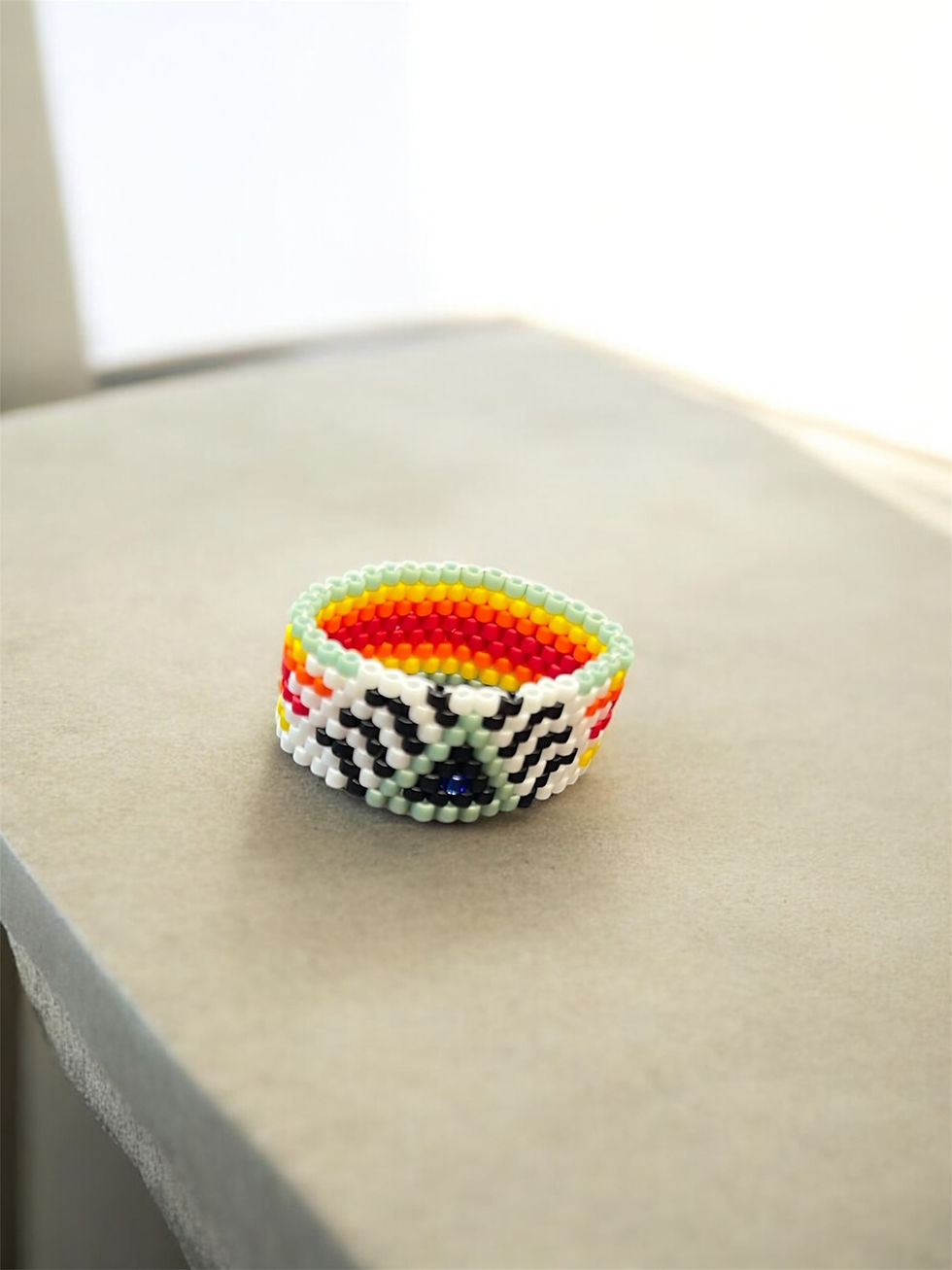 Tribal Peyote Beaded Ring Sz 7.75